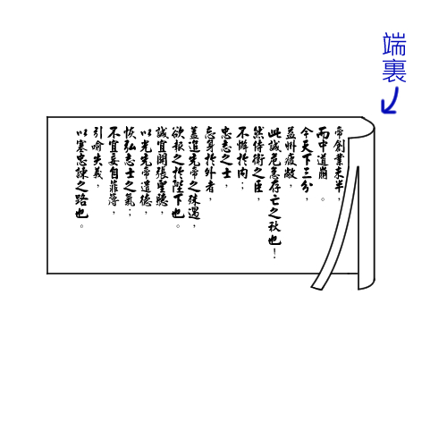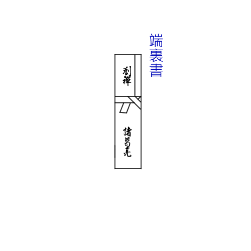 「端裏書」:卷好後用外露的紙條打結,然後寫上收信人、寄件人或任何有關信件的文字。